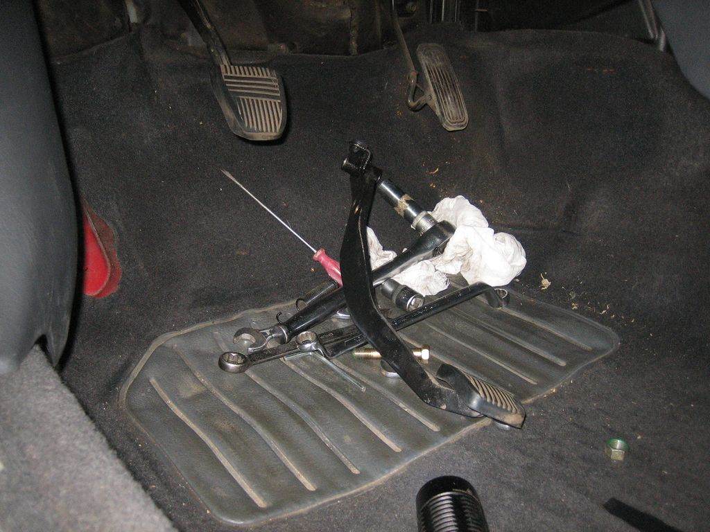 Mr_Nuke У меня нормально от руки все закручивалось. Если туго идет надо просто леркой с метчиком пройтись по резьбе. Кстати педаль тормоза я снимал.