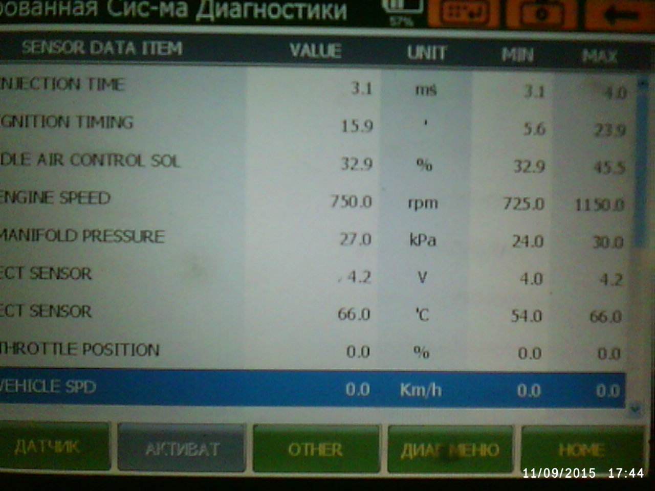 Маловато параметров на сканере, вроде как ни слова о обратной связи с ДОС датчиком. Хотя 4.2v это может быть о нем? И время впрыска прям как у меня, а у меня вроде как ДОС не але, по крайне мере при езде отключается, и скорее всего программа работает по резервным картам. Может быть у тебя так же?