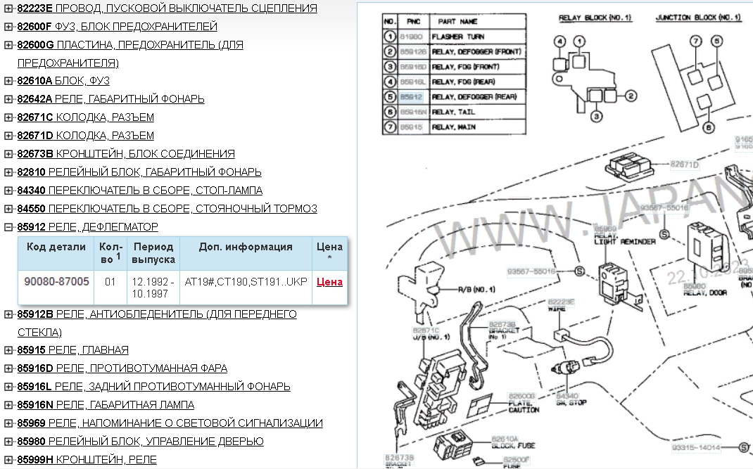 Mogilov1820 писал(а): даже щелчок реле слышно. Перещупал все реле около ноги водителя , так и не выкупил какое именно реле щелкает Если реле щёлкает, то можно почувствовать положив на него палец. На моей машине это реле находится за блоком реле №1в районе предохранителей 18-19. https://www.japancats.ru/toyota/Parts.a ... 069&Title=Схема%204%20из%207 Реле № 5
