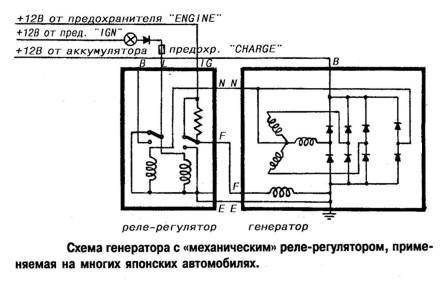 Поковырял реле-регулятор, прозвонил штеккеры омметром при полностью отключенной проводке от аккума, регулятора и..... О, боже!!!  нашел ещё непростительные ошибки, которые допустил прошлый "электрик". (В проводке, мягко выражаясь, это степное копытное парно-длинно-ухое создание посадило провод В на массу!!!, а также последовательно развязал два выключателя: фонари заднего хода и передних ПТФ, сделав отдельную проводку! причем, в присоединении к самому фонарю ЗХода он подал напряжение на отрицательный провод задних фонарей.) В общем, эпитетов в стихотворной форме тогда я для него сложил немало - могло хватить и на поэму. Выкладываю исправленные схемы издательства Легион и подкорректированную и с возможными дополнениями схему ещё одного автора, распространенную на форумах (кстати выше она есть в рисунках). Кстати, что хочу отметить: на 3-х контактный штеккер щеткодержателя выводят или питание (В) или массу (Е) - ошибка при подключении может дорого стоить, учитывая что идут они на один и тот же контакт штеккера. Лучше "прозвонить шлейф" от реле к щеткам.
