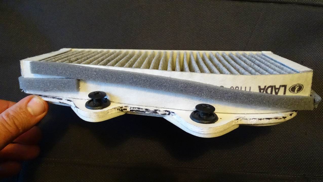 Kentavr Переделывал, немного подрезал по форме, и наклеил селиконом на кусок пластика, а снизу уплотнитель. Фильтр с калины, номер не помню, коробка гараже. По размерам подошел. На машине стоит отлично.