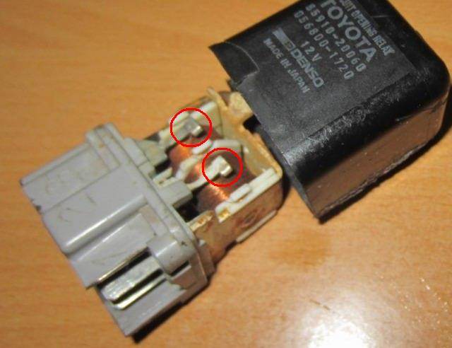 Саня уфимский писал(а): всем привет, случилось что-то с моим реле бензонасоса (85910-20060, 056800-1720 двиг 7A-FE LB) у удерживающей обмотки силенок не хватает и она только слегка прижимает контактную пластину (может напаять контакт миллиметр и она будет доставать  ), пока не вскрыл не понял, вроде щелкает после выключении зажигания, а оказалось не работает как надо. с первой обмоткой все в норме.. отчего двигатель запускался и глох спустя 2-3 секунды после старта.. никто не видел где продается? от каких двигателей еще подходит? чем отличаются друг от друга и как чувствуют себя мозги, если реле просто нет, пока езжу с +12v от прикуривателя. в общем вопрос решился: были отжаты зажимы в красных кружках, провод обмотки был откушен, аккуратно зачищен от лака, и обжаты вновь, контактную группу почистил плоской стороной лезвия канцелярского ножа, далее бумагой.. все пока работает, параметры катушек в реле были как на картинке