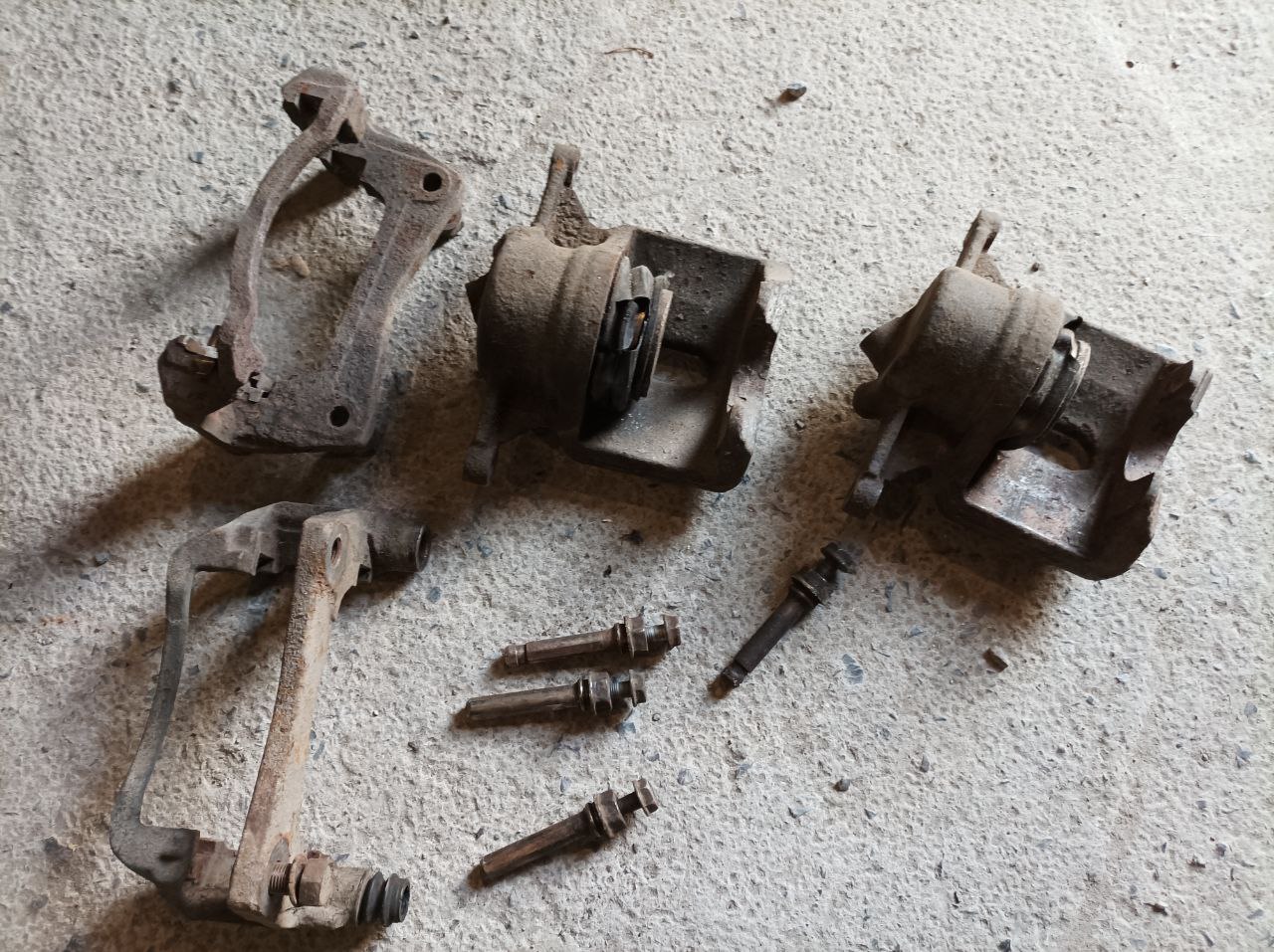 Всё в хорошем состоянии, диски вообще как новые, но суппорта хотят ремкомплекта. Вместе со всем этим отдам два ремкомплекта - но они, по моему, не полные.