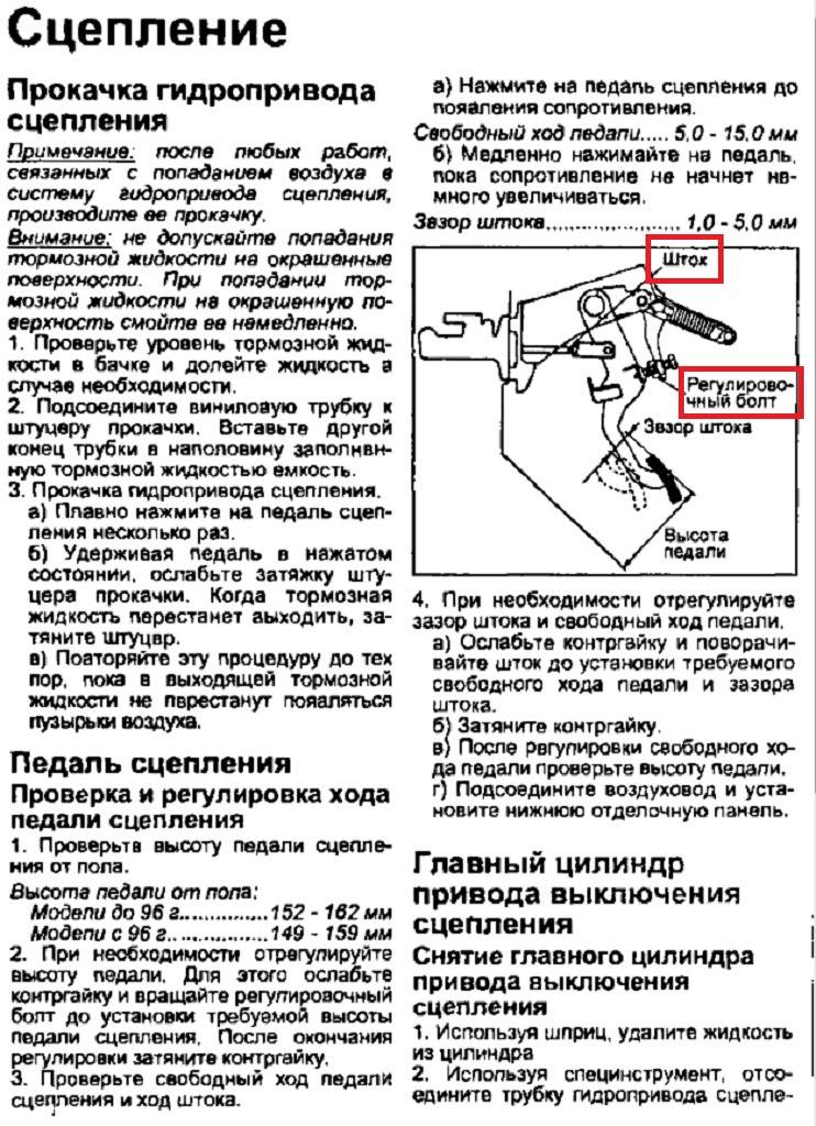 Юрий спбЧуток не успел, месяц назад снял  , по памяти вроде немного ниже тормоза была, может там слой шумоизоляции мешает, не проверял под ковром?, Юрий спб писал(а): в мануале высота педали сцепления 16-17 см у меня 152-162 по мануалу, регулировочный болт и шток крутил?, нужно это делать одновременно, одно другому может мешать. Вложение:
