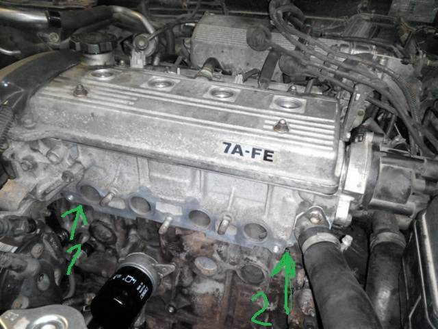 MerTV писал(а): без фото всего лишь красивый рассказ. Где конкретно масло? Спереди двигателя. Начиная от стыка с головкой. Под номером 1 - течь масла. Под номером 2 - течь антифриза