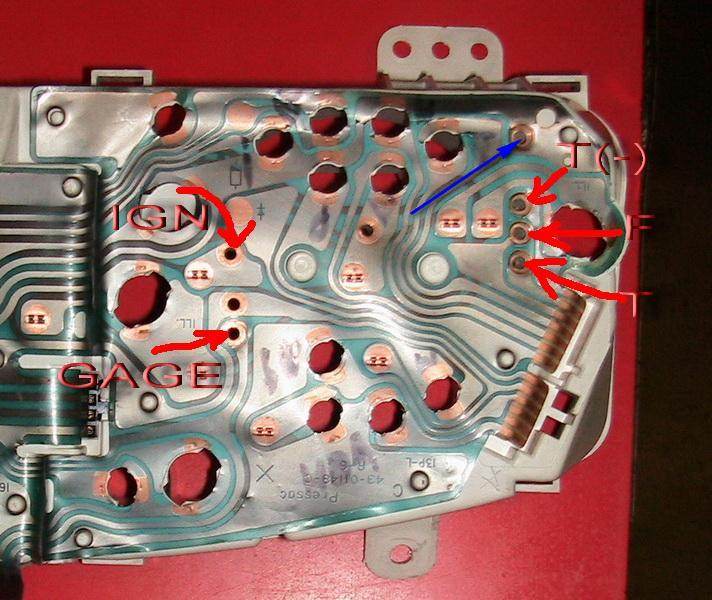Теперь сравни свое фото с этим, контактный болт IGN(+12 вольт) отсутствует. Как думаеш прибор без питания работать будет ? На фото Т22 дорестайл, несмотря ни на что сами приборы до и поле рестайла не менялись. Менялся только дизайн гибкой платы и распиновка на штекерах. На контактах указанных стрелками винты должны присутствовать обязятельно. Добавлено спустя 9 минут 23 секунды:andron58 писал(а): Мне сдаётся,что дело не в приборке.... Если приборка в неадеквате то она будет реагировать как ей вздумается. Поплавок проверяется тестером без вынимания из бака. Нужно только отключить фишку под задним сидением и найти по букварю контакты поплавка. При почти пустом баке - около 100 ом, при половине - около 50 ом, при полном - около 0 ом. Разброс показаний может быть в пределах 20 %.