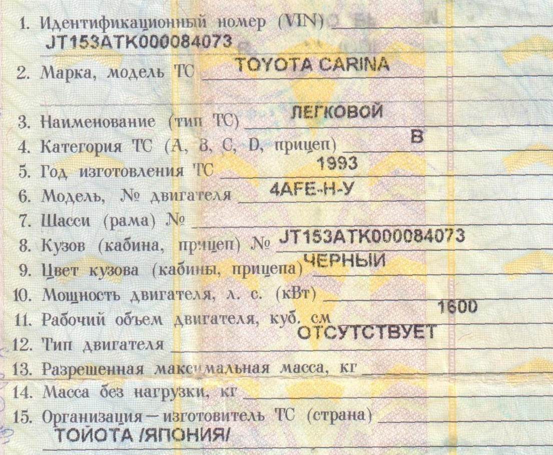 Странно, в обоих ПТС, что у меня были было написано Тойота Карина. Без "Е".