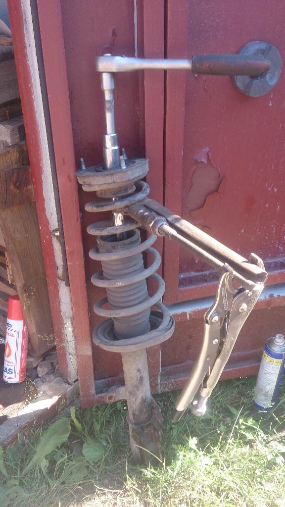 BaZ Можно было обойтись без газового ключа. Окончательную затяжку можно делать после установки стойки, а откручивание (срыв гайки) - до снятия.