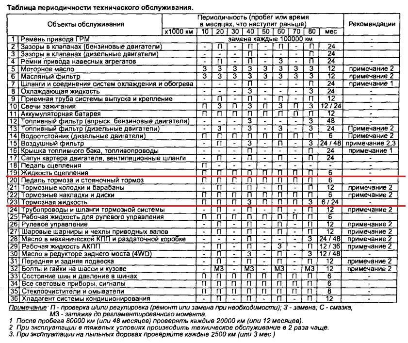 А вот тормозную, нужно менять каждые 40 т.км или 2 года, в независимости от ее состоянии, с проверками каждые 10 т.км или 6 месяцев.