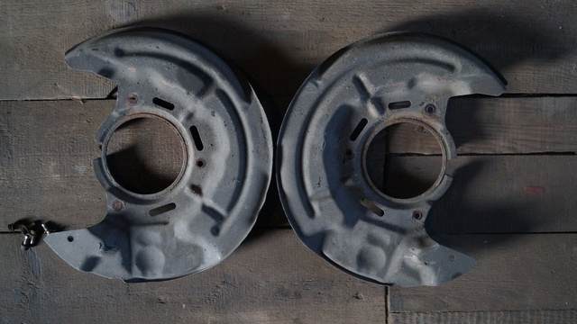 Щит переднего тормозного диска, оригинал, без ржавчины, с болтами 1500р. пара Диски тормозные перед, 28-е, оригинал, 2500р. пара Суппорта перед, 28-е, оригинал, с новыми оригинальными пружинками, колодками и резинками, без ржавчины, покрашены 6000р. пара (без колодок 4500р.) Эмблема крышки багажника к-т 1000р.