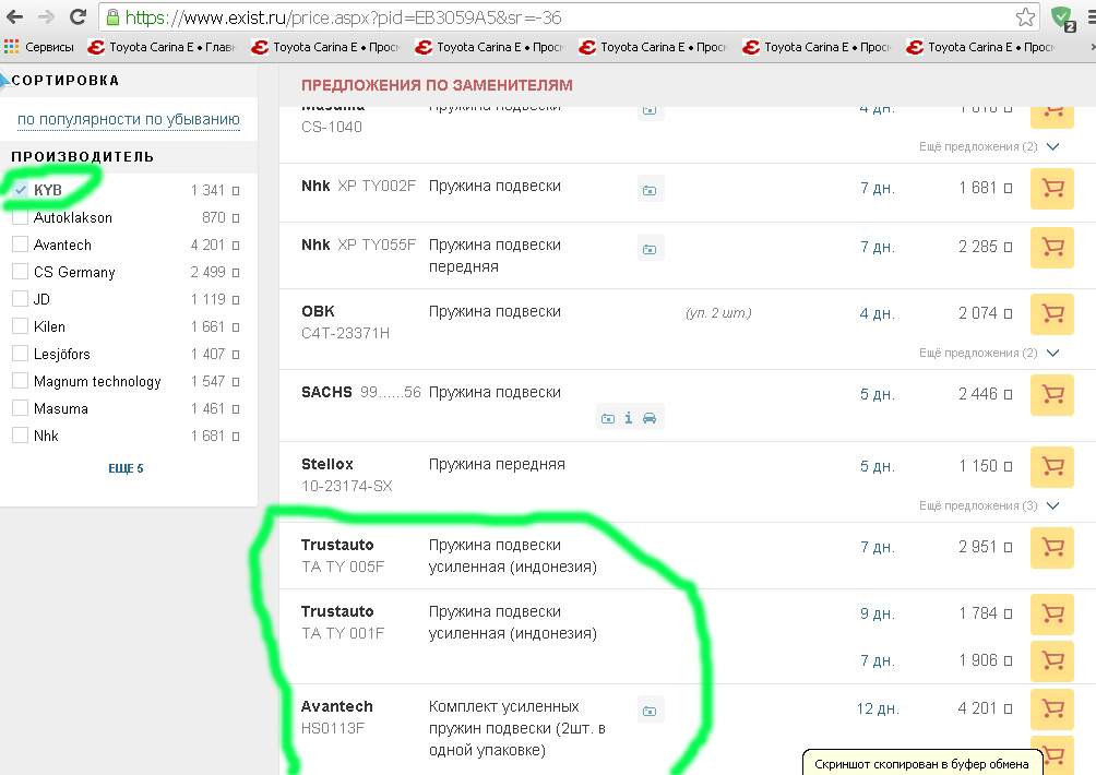 Вот  ,помню тоже что-то раньше писали в "Экзисте", да и в каталоге "Каябы" есть выбор... Добавлено спустя 9 минут 33 секунды:White Wolf писал(а): Это фантастика Официально то Карина Е в России и СНГ продавалась на закате конвейерной жизни, врятли такое замутили "пакет для стран СНГ". Это надо смотреть на машины рынков стран 3 мира Тем не менее,никакой фантастики я не вижу: Добавлено спустя 6 минут 48 секунд:Сергей С@ныч писал(а): Предположили что для плохих дорог подвеска должна быть мягче. Я могу ошибаться  , но по моему как раз наоборот, жёстче... Добавлено спустя 54 секунды:White Wolf писал(а): Основная идея таких "пакетов", повышение клиренса и энергоёмкости подвески за счёт хода амортов Вот тут, я согласен. Добавлено спустя 2 минуты 27 секунд:White Wolf писал(а): врятли такое замутили "пакет для стран СНГ" Насколько я помню, в Легионовском "Букваре" есть про это статейка  ...