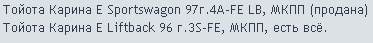 Машина: Карина-Е 1,6/1,8 сарай и седан