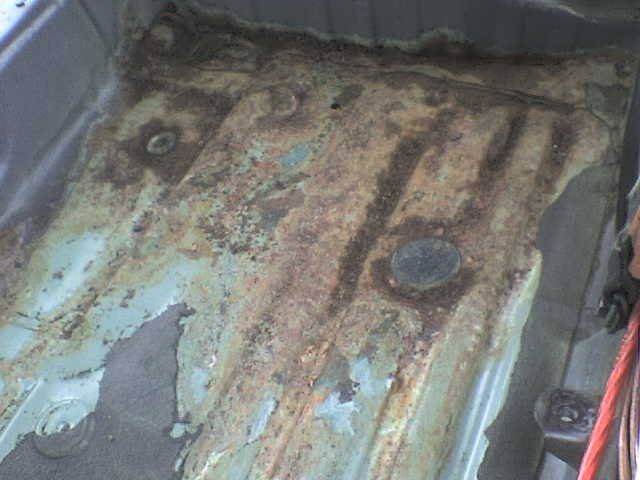 отписываюсь о результатах,как выше писал обнаружил ржавчину на полу,сначала снял ее дрелью с насадкой,потом обработал цинкарем,на фото после первого применения,образовываеться белый налет там,где ржавчина была,потом еще раз обработал,пробовал растворителем стирать,налет остаеться,на третий раз решил обработать,на фото,сразу после обработки,то есть не высохшее,видно,что то место,которое в ржавчине было черным стало,после третьего раза налет белый был не везде,не знаю почему,остальное черное было,затем покрасил антигравием хайгировским,правда хватило на один раз,если на два,как в инструкции написанно,то надо два балончика брать,заглушки промазал герметиком перед установкой,заглушку на полу в районе водителя,которой не было,вырезал из листа пластика и тоже посадил на герметик
