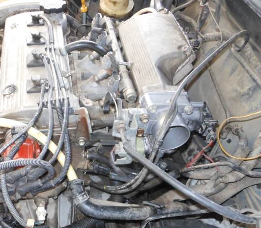 На 7A-FE LB этот шланг надет на термоклапан (голубого цвета), который вкручен в корпус для термостата. На термоклапане два штуцера. Один штуцер соединён с корпусом дроссельной заслонки (на Вашей фотке его видно), а к второму штуцеру должен быть подсоединён этот шланг.