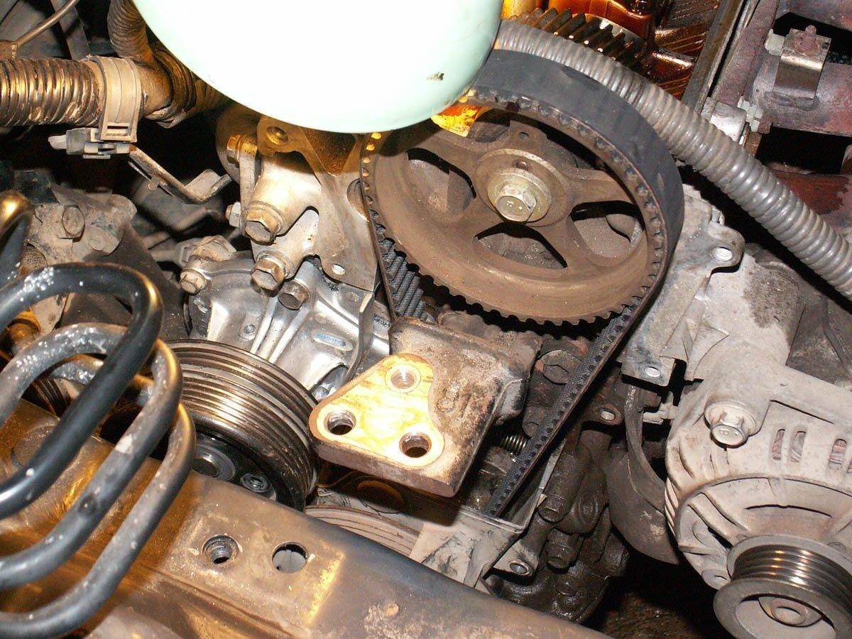 Для удобства манёвров пришлось ослаблять ролик натяжителя ремня ГРМ, так как болт крепления помпы расположен под ремнём. Ещё снимал дополнительно полностью опору правую двигателя с блока(мешалась) и также поднимал трубки масленного охлаждения. Самое тудное это открутить нижний болт крепления помпы его лучше откручивать с низу машины так как с верху мешает шкив, и маеленькой трещёткой с короткой головкой на 12, я его откручивал со сороны правого колеса путём подьёма машины и опусканя двигателя.