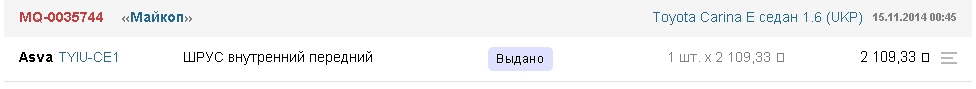 _________________ Андрей. Carina E 4A-FE LB МКПП AНГЛИЯ,12.96г. УНИВЕРСАЛ. Hyundai Solaris 1.6 2014г. Хетч. SUZUKI IGNIS 2WD МКПП 1,3 2007г.