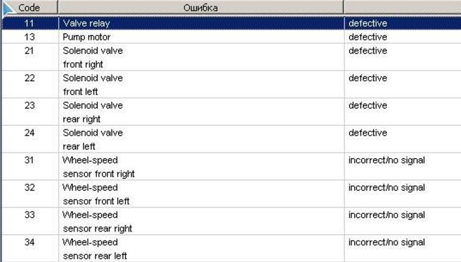 dess_ik писал(а): Не совсем понял как трактовать результат. Ошибки 11 и 34 Переведи с английского, мне сейчас надо ехать. 34 - по моему задний левый датчик