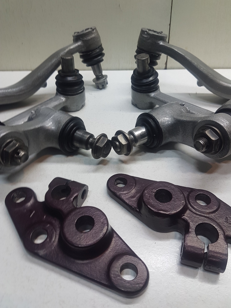 Всем привет Ребилд рычагов продолжается! Приехала вся передняя подвеска от Toyota Carina E GTI. А именно: Передние рычаги, стойки с шаровыми, тормоза, рулевая рейка в сборе. Не которые рычаги уже подвергались вмешательству. На фото видно 1 рублевые монеты в количестве 2 шт. Парня зовут Павел, из ЕКБ. Свапает подвеску СуперСтрат SSS, на обычную Carina E. Все детали уже в работе, скоро завершение. Не пропустите.  Инст. ВК ____ok_service21