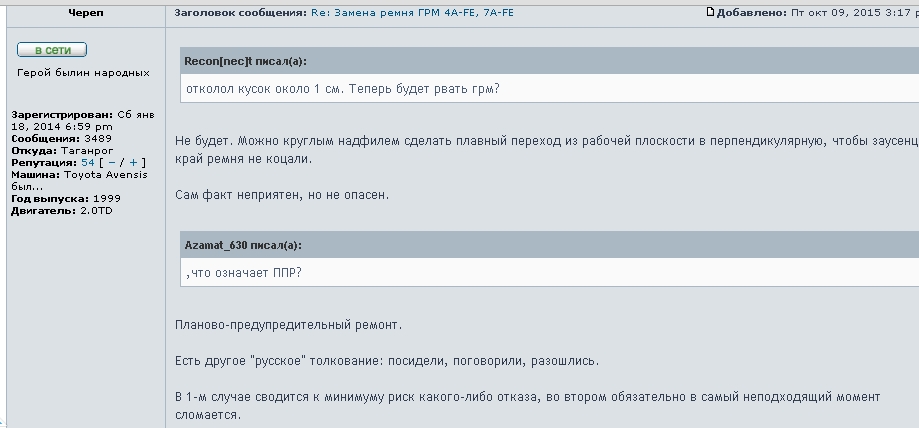 Череп писал(а): Вози с собой запасной ремень и не парься. На днях будет 5 лет как вожу с собой в багажнике, а как же ППР? Добавлено спустя 3 минуты 31 секунду:Лето писал(а): Интересно будет узнать, кто изготовитель ремешка, который это выдержал.