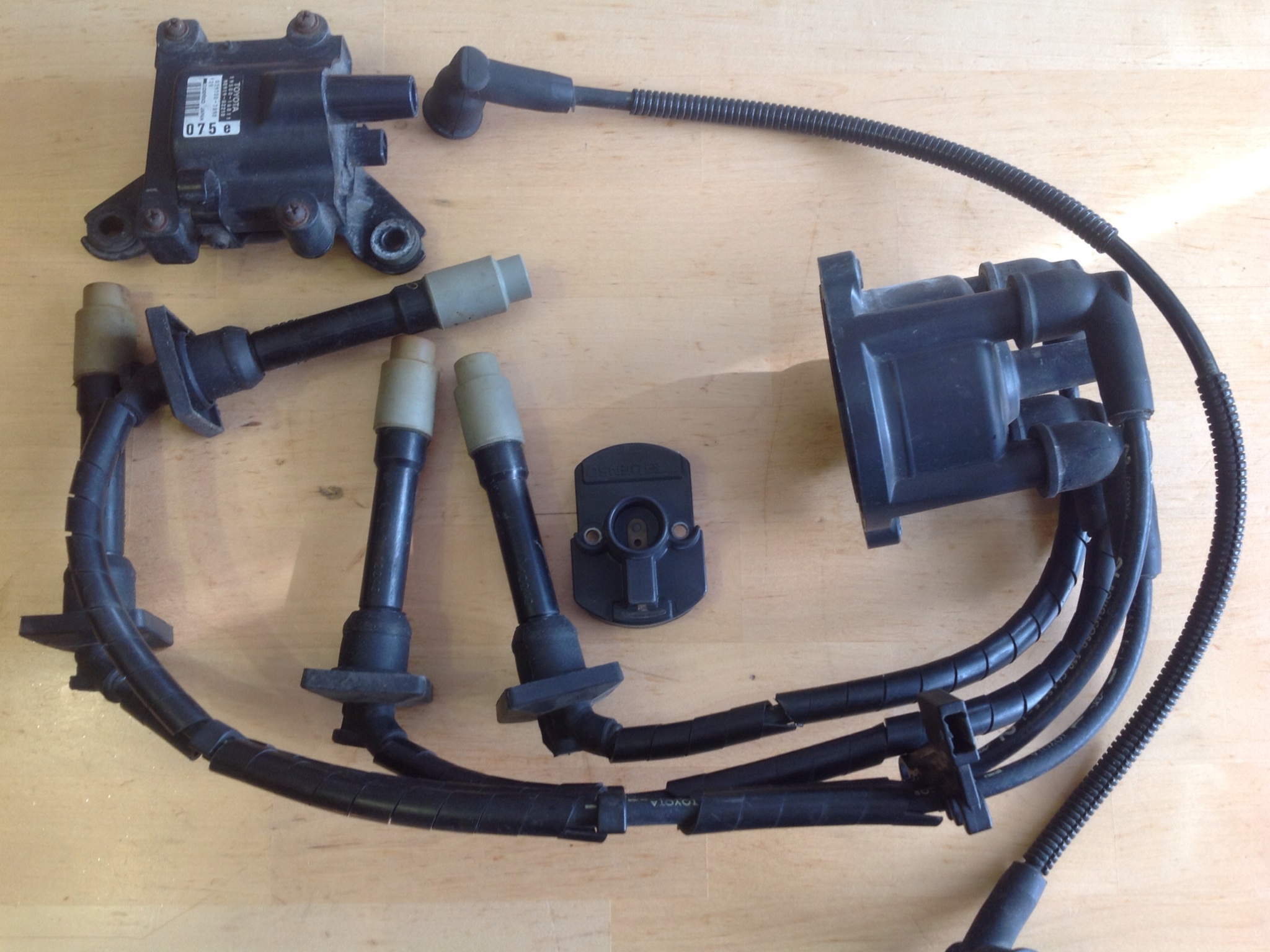 Рамка магнитолы, (состояние отличное-без дырок, трещин и потёртостей)+ накладка блока управления стеклоподьёмниками (в аналогичном состоянии, обе детали с одного авто)-3.000р. Лючок бензобака-500р., планка подсветки номерного знака-1000р. Фильтр топливный, оригинал-1500р., свечи зажигания PK20R13 / 90919-01187 (100% оригинал, из старых запасов)-3.000/комплект 4 штуки, 20 оригинальных гаек на штампованные диски -500р., комплект секреток- продано. Полиуриетановые сайлентблоки и болты схождения/развала, покупались на Калдину- продано. Фильтр "нулевик" -500р. Оригинальные гайки на литые диски-1000р., провода на LB "из волшебной коробочки", (два провода понравились мышке на завтрак)-1000р., сайлентблоки передних рычагов RBI-1000р./комплект 4 штуки., ролик ремня ГРМ 4А/7А-500р., сцепление оригинал, пробег на авто-150.000км, корзина/диск/выжимной подшипник-2.000р., стёкла на "рестайлинг" зеленый оттенок, передние/задние/форточки(седан), эмблемы на крышку багажника, вставки задних фонарей(седан), часы, кнопки, уголки зеркал передних дверей, вставки-ручки под обшивки рестайлинга.