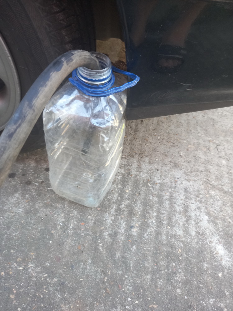 Кстати, думаю, если включить передачу на вывешенных колесах и покрутить колесо, то насос должен заработать и жижа потечет быстрее