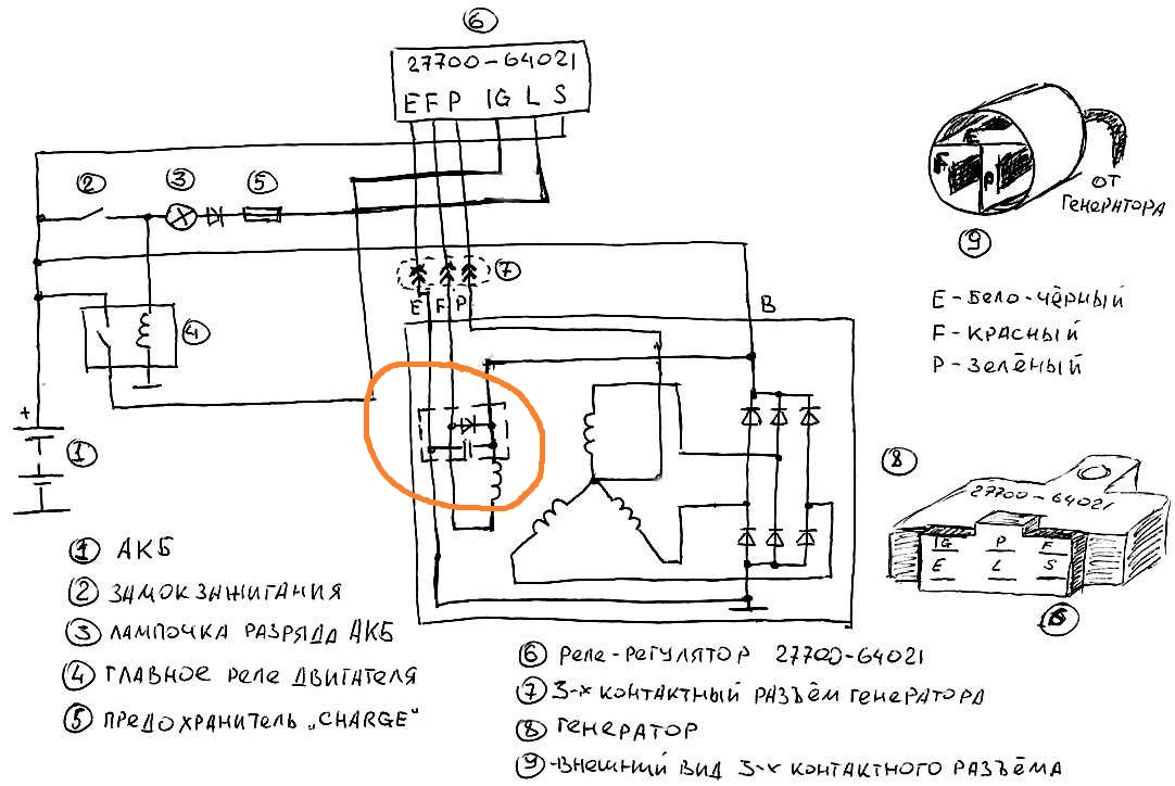 Slava21 писал(а): l_denis Сделать фото щёток можешь? Место их установки тоже. Может придумаем тебе какой то колхоз общими усилиями. . Я его еще не разбирал. Сейчас пойду вскрывать. Вот попалась схема, один чел на генератор митсубиши приколхозил выносной регулятор. Я с дуру так подключать не хочу. Мне нужно убедится в работоспособности схемы. Он прямо на щетки цепляет. А у меня, судя по схеме, на щетках конденсатор висит и диод. они внутри генератора. Это не имеет значения можно так подключать? Голова кипит  Не, нифига. Если подключать выносной регулятор от ВАЗа, то нужно именно к щеткам цепляться и озолировать их от потрохов генератора. Там одна щетка на диодный мост законтачена, а на вторую + с регулятора подается.