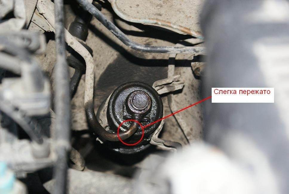 Как видно на фотографии - белый налет - бедная смесь. Причин я так понимаю несколько может быть - неисправный датчик, неисправность в системе подачи топлива, в моем случае, как вариант, возможно то что в кружке на второй фотке. Может ли бедная смесь являться причиой провала при нажатии газа?