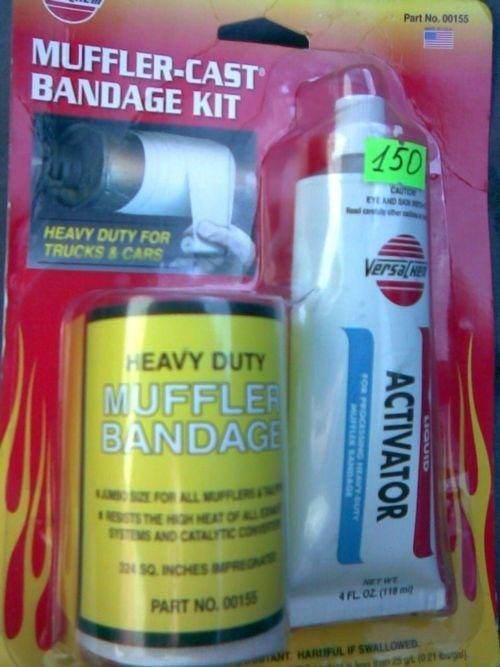 После недавней поездке на природу у меня на выхлопной системе появилась трещина (показано стрелкой). В сервисе сказали надо разбирать и заваривать. Боюсь, что при разборки глушителя они могут еще чего небудь сломать. Вот купил набор для ремонта глушителя. Кто чего может сказать спасет это меня или все-таки нужно варить.
