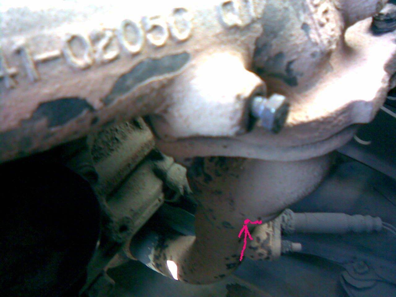 Наконец-то мне заварили трещену и теперь все там в порядке. Но появилась новая проблема. На рисунке показано стрелкой там тоже есть отверстия, заварить мне сказали невозможно только если покупать гофратрубу и переваривать. Кто чего может посоветовать? Может какя-нибудь гофратруба от российских машин подходит?