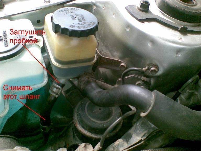 Отсоединил шланг что потолще и заходит повыше (проходит над ремнём ГРМ), заткнул отверстие в бачке - обвязал целлофаном и перемотал поверх изолентой, чтоб пробок не мастерить, устроил шланг в бутылку... Ждёмссс... А жидкость попёрла с другого - нижнего шланга, что со змеевиком, проходящим под бачком с ОЖ и жидкостью омывателя и наполнила бачок, а из того ни капельки и не было.