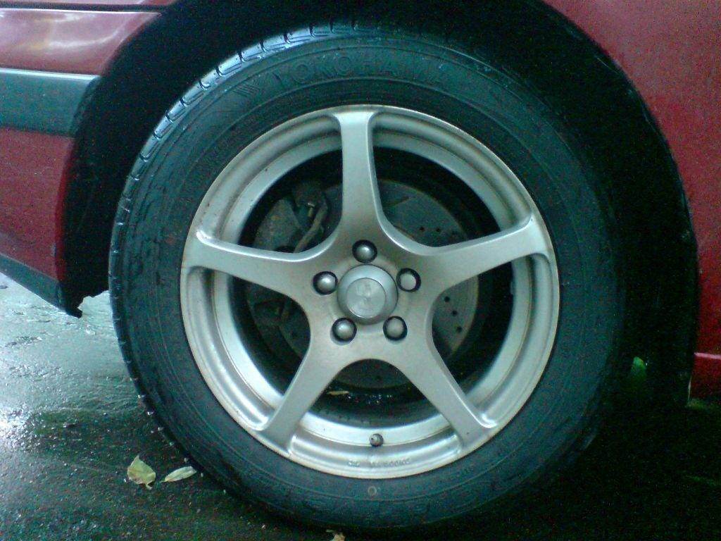 Первое фото с машиной: Пятнадцатые с шинами 185/65/R15 (не очень нравилось как смотрелись, т.к. были выпуклые и резина узковата, а покупать новые балоны жаба задушила - были проданы  )