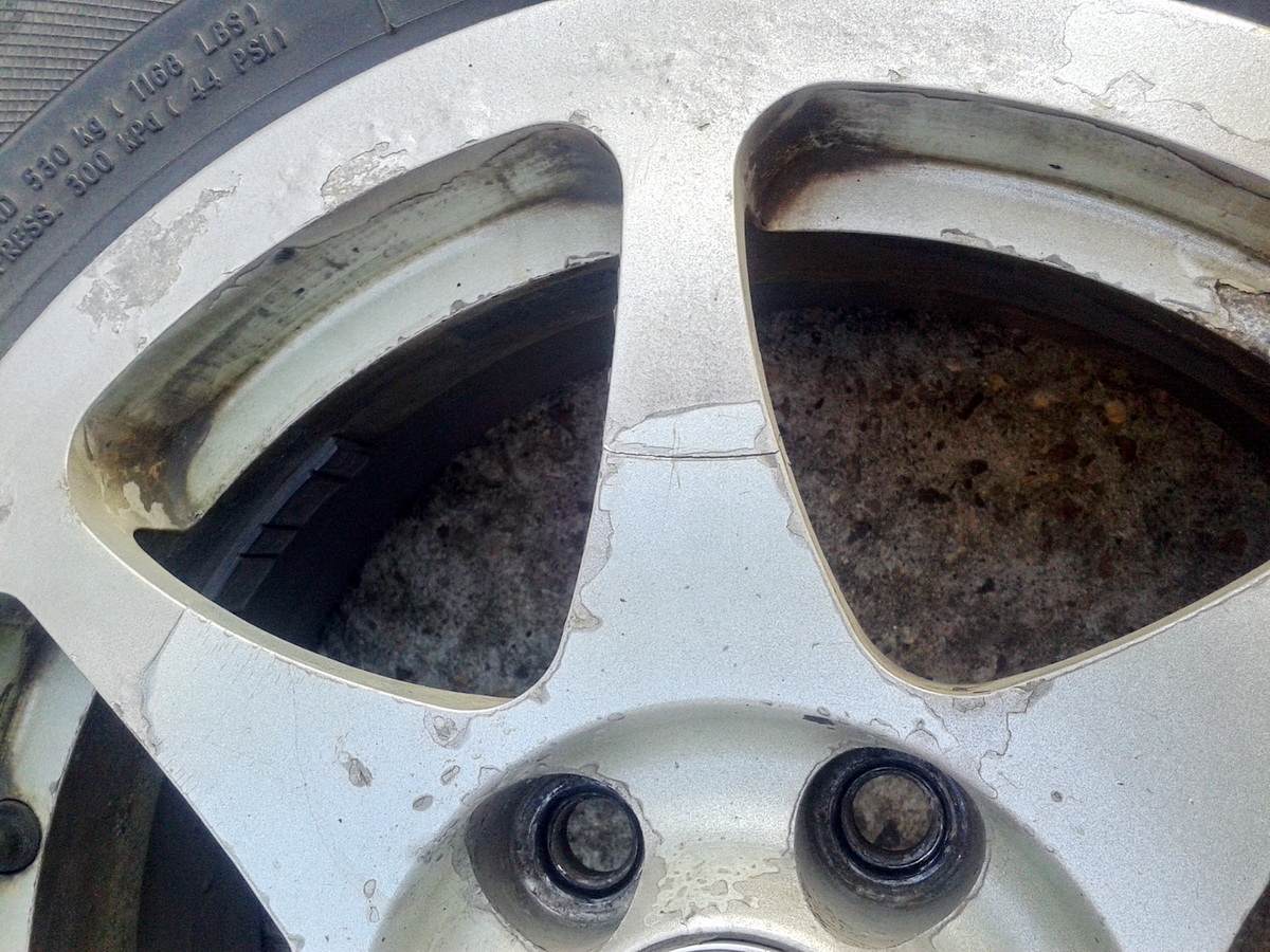 На призыв помощи о треснутой спице диска отозвался одноклубник и подкинул за небольшую плату комплект дисков на 14". Теперь переобувка и посмотрим как балансируются… размерность 14" 6J, 5х100 35 вылет вот что было на моем после зачистки дисков...