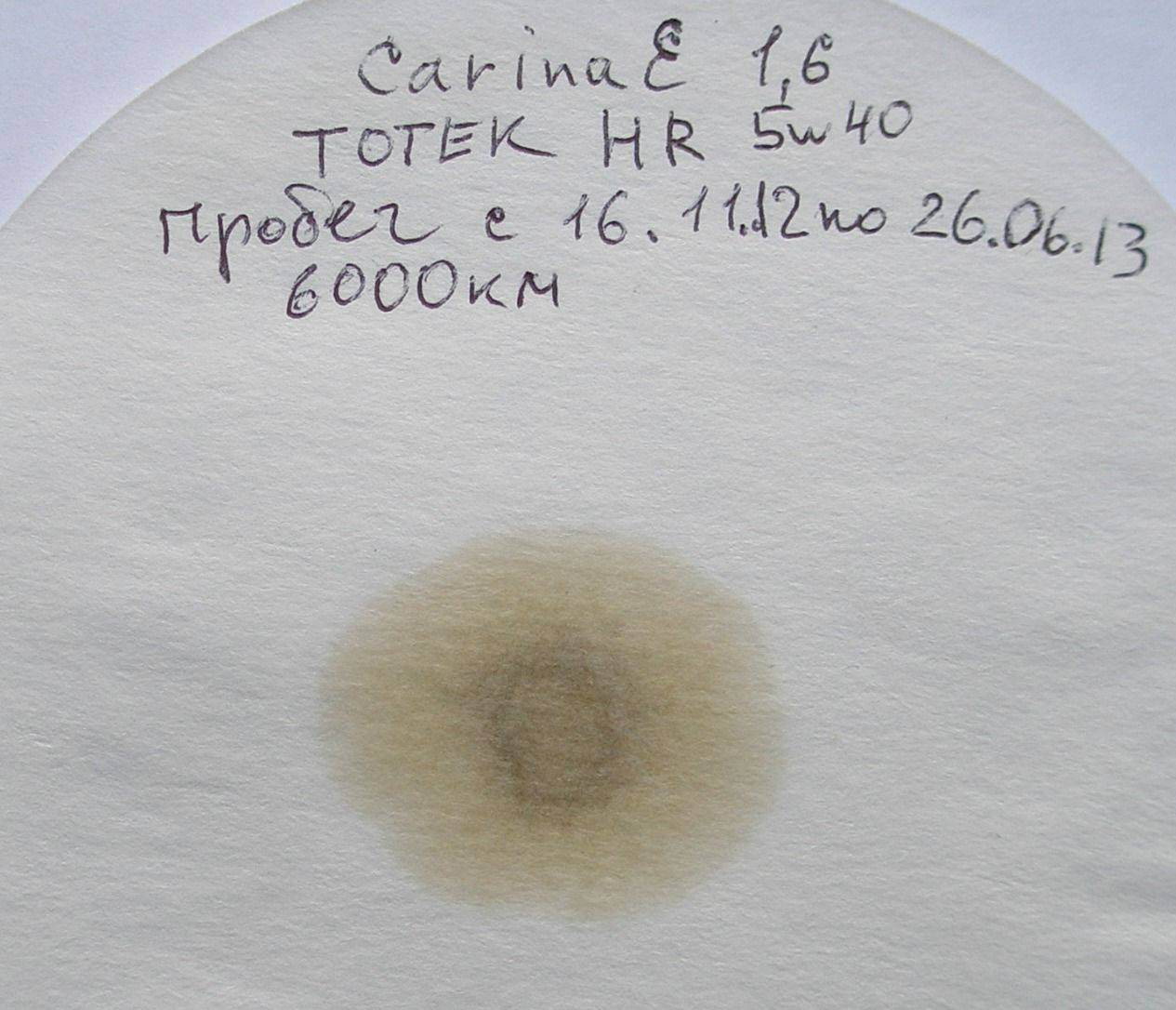 Очередная проба на 6000 км. пробега, и 8 месяцев. Взято из горячего мотора после пробега в 170 км по трассе, сушка пробы - сутки. Количество сажи не изменилось, цвет масла стал немного темнее. Больше никаких изменений я не вижу. Предыдущая на 3100 км. (после зимы) была тут (крайняя справа) http://www.oil-club.ru/forum/topic/5210 ... _p__177221