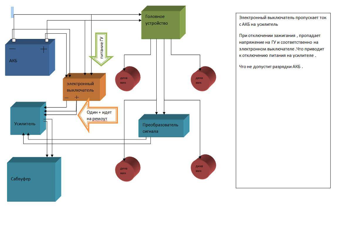 rodik33rus рэм на питание антены, а если по твоей схеме, то лучше выключатель не на силовые провода поставить, а протянуть рэм на плюс, например от прикуривателя, и повесить выключатель на него