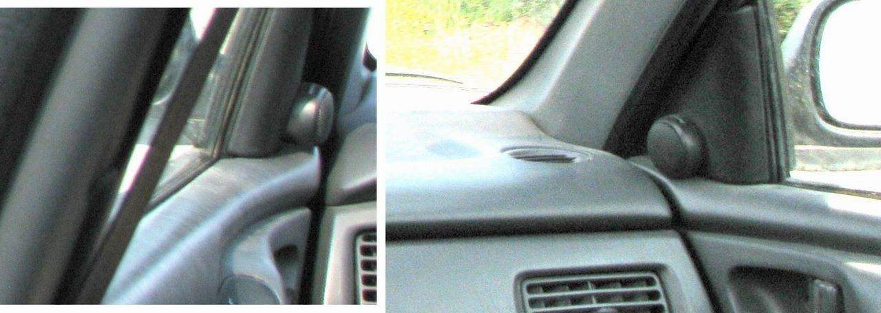 Я сделал из передних динамиков переходники и поставил на 13 см (от прежней машины остались). Пищалки прилепил на двойной скотч (что был в комплекте с ними), а провод просто провел под обшивку (дырок никаких не делал).