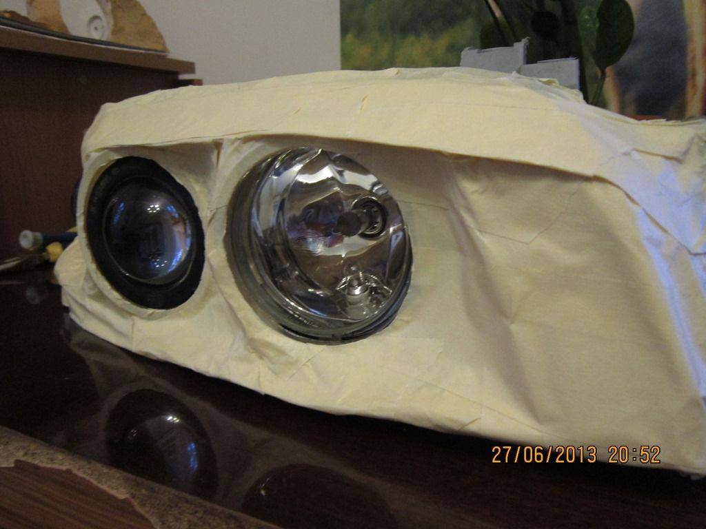 Вобсчем, неспешно, продам наверное свою модульную оптику из данного проекта. Фары собраны в корпусе АГ второго поколения, переделаны под корректор, изготовлена маска из стеклопластика (по маске есть косячки, надо дошпаклевать и дошкурить.), модули оригенальные HELLA. Ценник видиться в районе 12т.р. (поворотники в комплект не входят, потому как зделаны стрёмно  ) Как то так  .