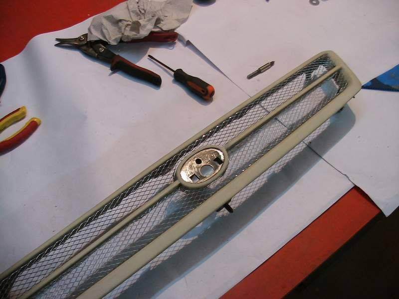 Имеем донором яповскую облезло хромированную решетку тайваньского производства, план добавит ей сетку но шильдик оставить на месте ! Выламываем, выпиливаем мелкие перегородки оставляя только центральную перемычку с местом под шильдик. Сошкуриваем к чертям весь хром с лицевой и внутренней стороны. Хром поддается очень плохо несмотря на то что местами облазит. Шкура №80 сильно помогла, после нее еще проходим №120 и №240. Вложение: Теперь сооружаем из подручных деревяшек шаблоны для изгиба сетки. Вложение: Габарит шаблона на 2 мм меньше в ширины проема и на 8 мм меньше в длинну. Режем сетку на полосы шириной 8 см и загибаем ее на шаблонах. Вложение: Использована обычная сторительная сетка ценой аж 30 гривен (~ 120 руб) за погонный метр. Методы крепления сетки выбираем любые - клей, холодная сварка, паяльник. Использовался метод сверления дырочек по периметру и завязывание обычной медной проволкой 0,5\0,5мм. Вложение: Видно не стертый хром с ушей крепления, ну и бог с ним закрасится. |