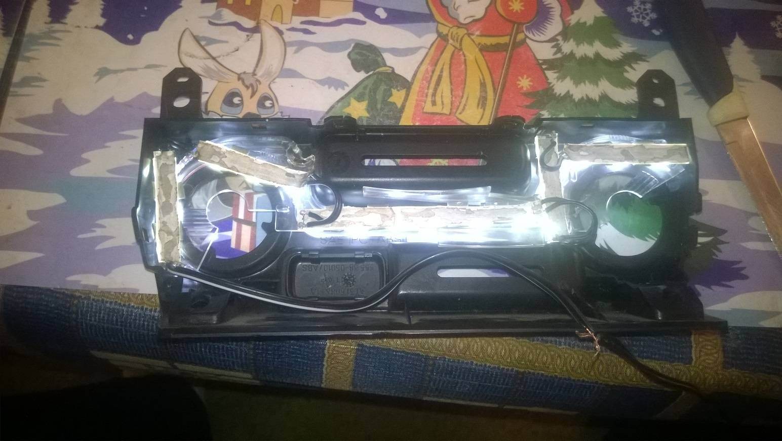 тоже хочу заняться подсветкой. подскажите куда вставляется проставка со светодиодами в освещении крутилок. между прозрачной штучкой и задней стенкой?