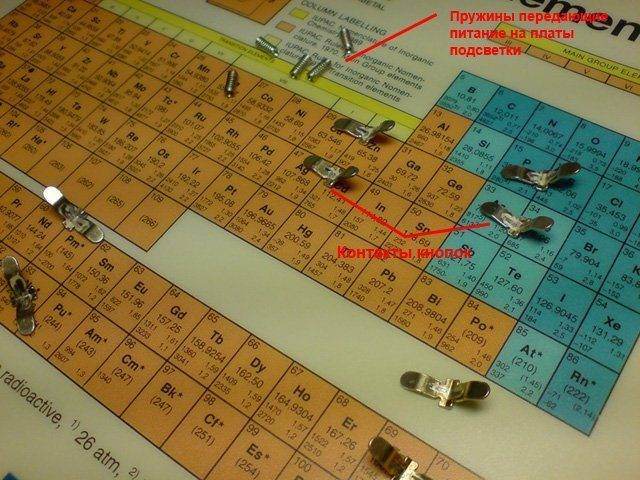 4. установил на нижнюю часть все пружины и контакты кнопок.