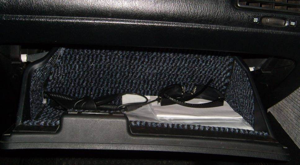 Достал уже меня этот постоянный шум из бардачка, решил его обклеить, долго ходил по строй магазинам пока на глаза не попался обычный коврик который кладут перед входной дверью, с низу у него резина, а с верху небольшой ворс цена вопроса 200р, купил скотч двухсторонний и суперклей, разрезал, подогнал по месту и вот что из этого получилось.