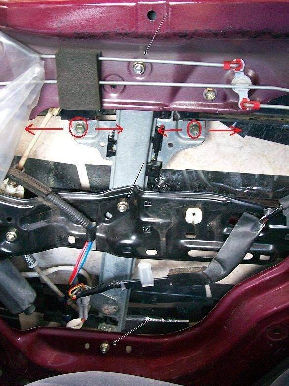 SummerWind писал(а): Есть ли какая-то возможность регулировки этого механизма, регулировки положения самого стекла? Регулировки механизма - нет, а вот стекла - да. Ты когда крепишь стекло к бегунку стеклоподъемника обрати внимание, что отверстия в бегунке позволяют немного двигать стекло вперед/назад. Добавлено спустя 3 минуты 58 секунд:Как-то так