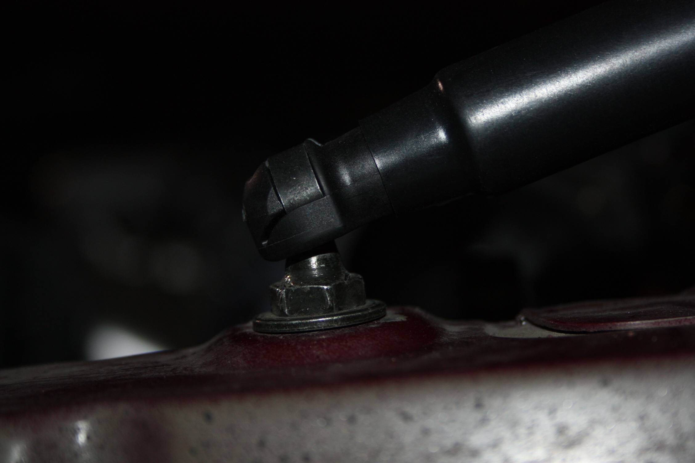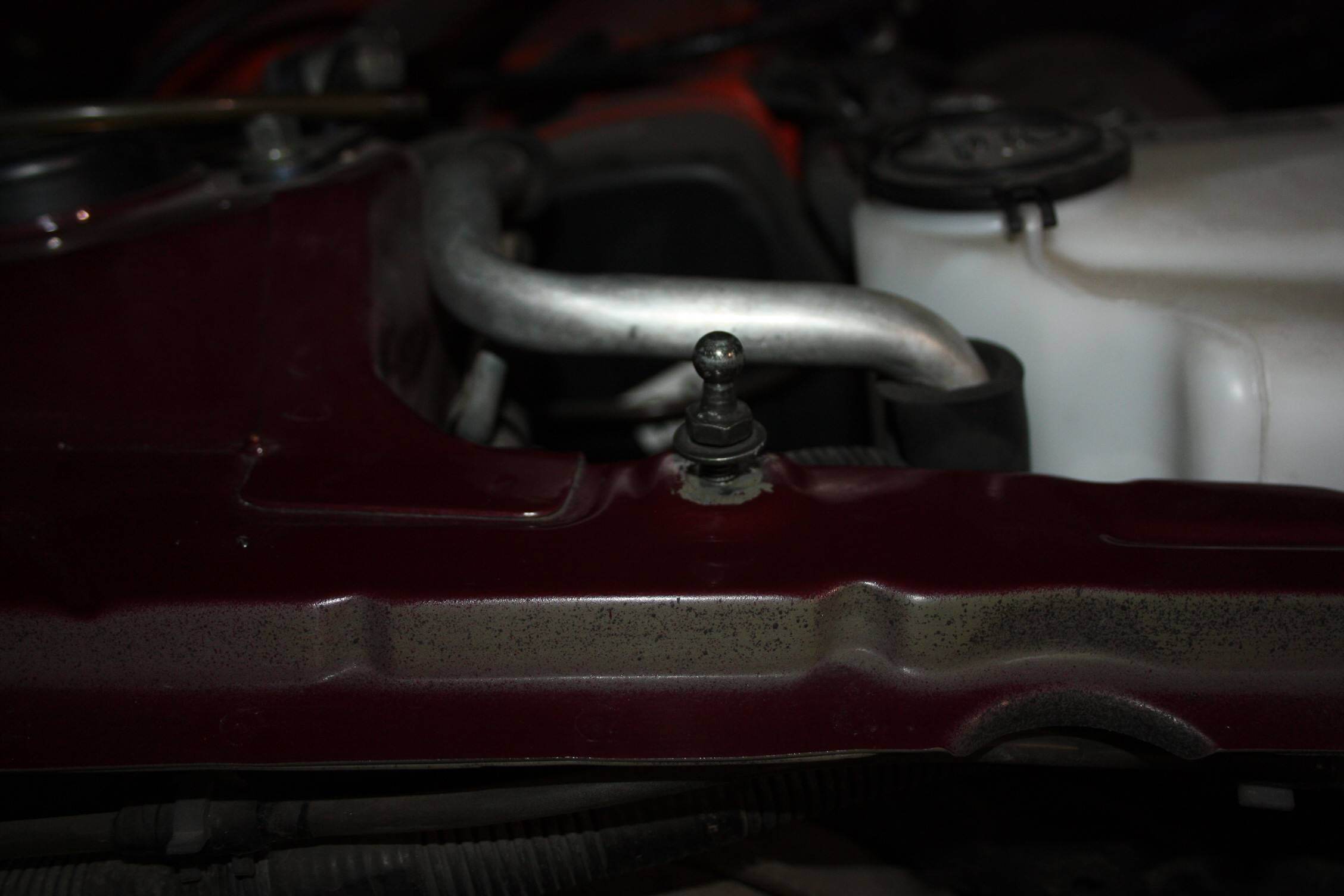 Цитата: Надо будет посмотреть как Саша Faranos у себя реализует. Не зря же он размерами интересовался...  Долго было некогда взяться, но наконец то сделал и наконец то нашёл время выложить отчётец. Изначально планировал сделать как на сонате, поэтому были приобретены аморты, крепления и шариковые упоры с неё. Так как железо новое меньше всего хотелось делать дырки, поэтому сонатовский вариант установки отпал, выход стандартный, но более прощитанный так сказать, в плане всяких зазоров и минимум затрат на крепления. И так: 1) откручиваем болт крепления крыла в середине, он ещё держит кронштейн отбойника капота. 2) берём сверло 6,5мм высверливаем резьбу в сухаре и метчиком нарезаем новую под болт на 8мм, тем самым обеспечили возможность вкрутить вместо болта шариковый упор. Эти упоры бывают разной высоты и имеют широкий или узкий шестигранник под ключ, но резьба у всех на 8. На крыло лучше установить подлиннее с любым шестигранником, шток будет со стороны капота, а корпус аморта возле крыла, тем самым исключим задевание корпуса о крыло. 3)Далее меняем болт капота на шариковый упор, на тот что покороче и с узким шестигранником(гайкой), этим исключим задевание аморта об крыло. Кстати как говорилось выше, болт капота имеет конус, так вот я заказал новые болты и они пришли простые с шайбой, непонятно. 4) Последний этап, вщёлкиваем упор от сонаты и наслаждаемся, уверенное открывание капота начинается выше среднего положения капота, но держит уверенно, считаю это преимуществом, так как меньше шансов, что приоткрывшись на ходу(ну всякое бывает), он распахнётся закрыв обзор. Выбранный тип амортизатора не задевает ливнёвку!!! Шток проходит мимо, есть нормальный зазор, впрочем смотрите фотки. З.Ы. Шариковые упоры можно найти в большом количестве на разборке на дохлых амортиках, мне лично их для опытов насовали кучу и все рабочие