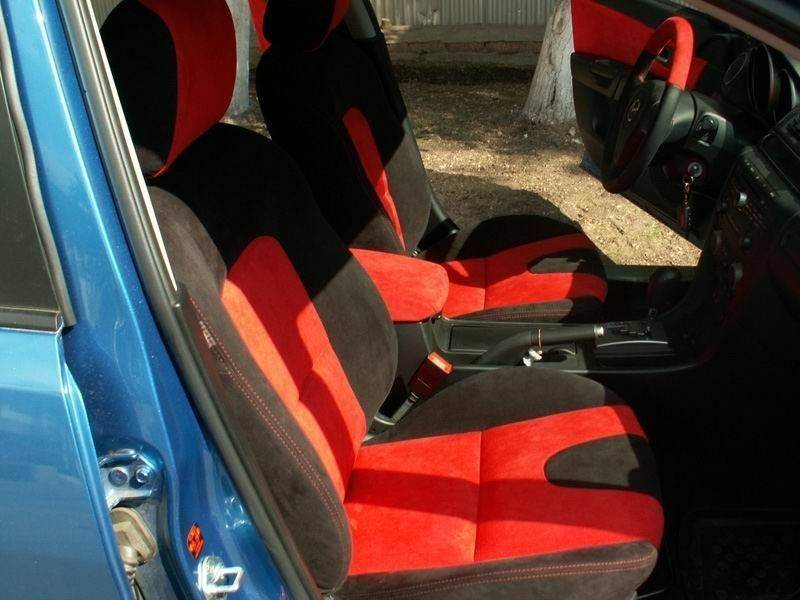 при чем тут красные, я ссылку дал на эту фотку, которая выше... а рекаро, которые у них идут, они монолитные, т.е. подголовник с сидением сшит, нам малость не подходит или выставить подголовник повыше и так надеть на сидение... дело в том, что эти сидения прошиты по другому, посмотри низ, как у нас на сидушках... он топоршится не должен, т.к. будет загибаться по всей длинне шва... правда такой комплект чехлов стоит 4500, в отношении к 3600 твоих... кстати хотел спросить, как спина и попа, не потеют, зимой как, в жару, в нагретую машину, запах от них есть винила, кожзама? а то стою на распутье, купить такие или велюр взять?