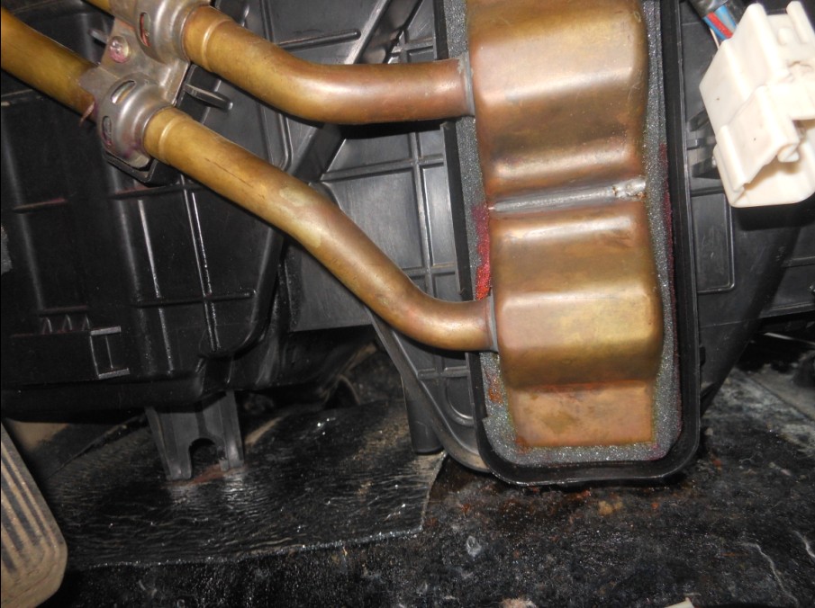 Заметил недавно такую картину, что стекло лобовое стало потеть. Включал кондиционер и осушал салон, антифриз приходилось доливать иногда, грешил на плохо закрученную заглушку слива с картера. И как-то во время очередной уборки салона приподняв передний пассажирский коврик заметил, что снизу он как бы замаслянный что-ли...Попробовал на вкус - сладковатый, опасения подтвердила газета - антифриз  . Опять придётся разбирать , та ещё камасутра  ...