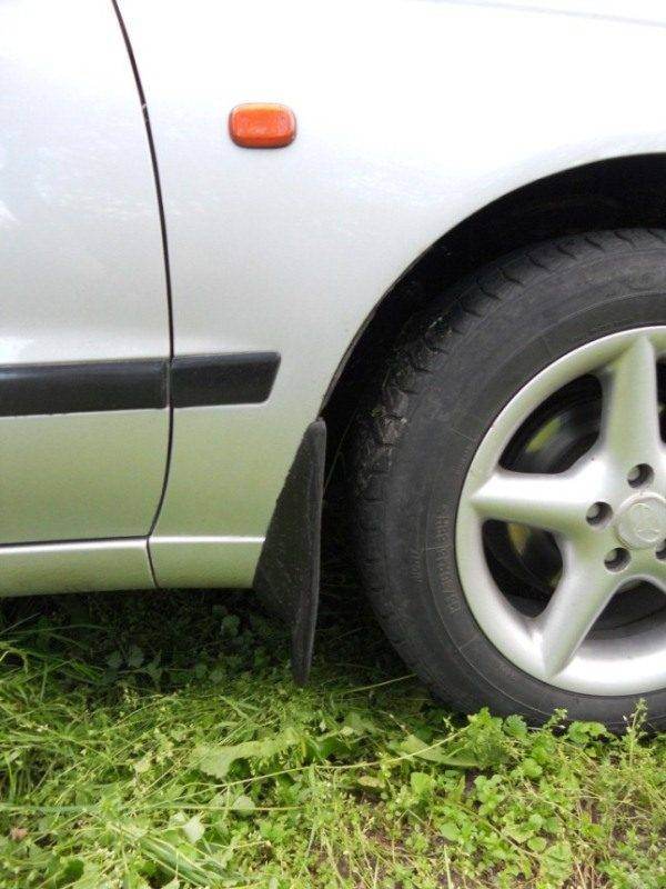 Наконец то установлены задние и передние брызговики. Задние элегант №2, передние прибалтийские, если кому надо точно, сгоняю на рынок и уточню. Передние вобще суперские, из мягонькой резины, гнутся как хочешь.