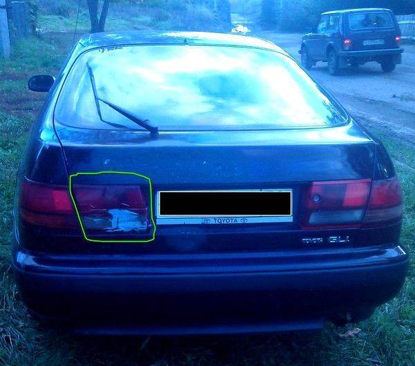 Приобрел себе машинку - Carina E 1994 - теперь вот стоит вопрос о замене заднего фонаря на двери багажника (слева - там где скотч).