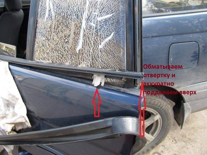 vitaly ну коли ты использовал мое фото, то и отвечу тебе я  Это стекло вклеиваится и фиксируется гайками под обивкой(пластиком). Снимай, откручивай, и к тем, кто стекла вклеивает, они струной срежут. Когда вклеют другое, после просушки обязательно пролей зазоры водой, или лучше на мойке попроси( а сам в багажник заберись и смотри внимательно). Мне первый раз плохо вклеили, затекала водичка, под пластиком не видно было. Пришлось по новой все снимать.