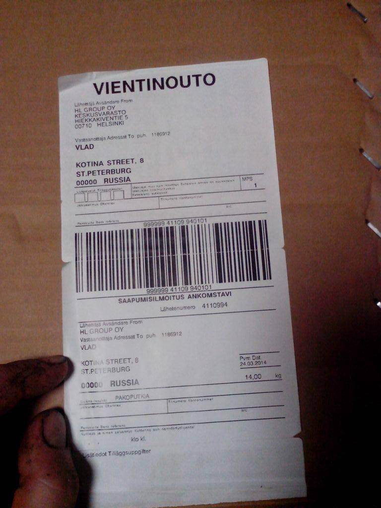 Shtusha писал(а): кто такое "Helsingin Laakeri Oy" Фирма упаковщик, а что там внутри