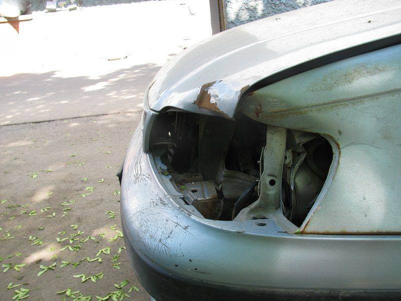 Плоскогубцами выгибаешь угол капота чтоб не цепляло за крыло,отгибаешь угол крыла,лучше снять бампер или часть его,потом откручиваешь крыло и тянешь на себя чтоб не цепляла за дверь и прикручиваешь!Я бы так сделал ,но всё это временная мера,надо ехать к мастеру чтоб рихтовал и красил,а то сгниёт потом всё да и зазоры тяжело самому выставить! |