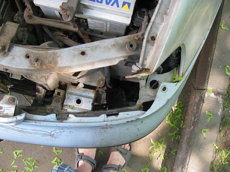Frencis ему сейчас нужно фару и поворотник ставить, а крыло и капот мешает, так что временно придется все же плоскогубцами |